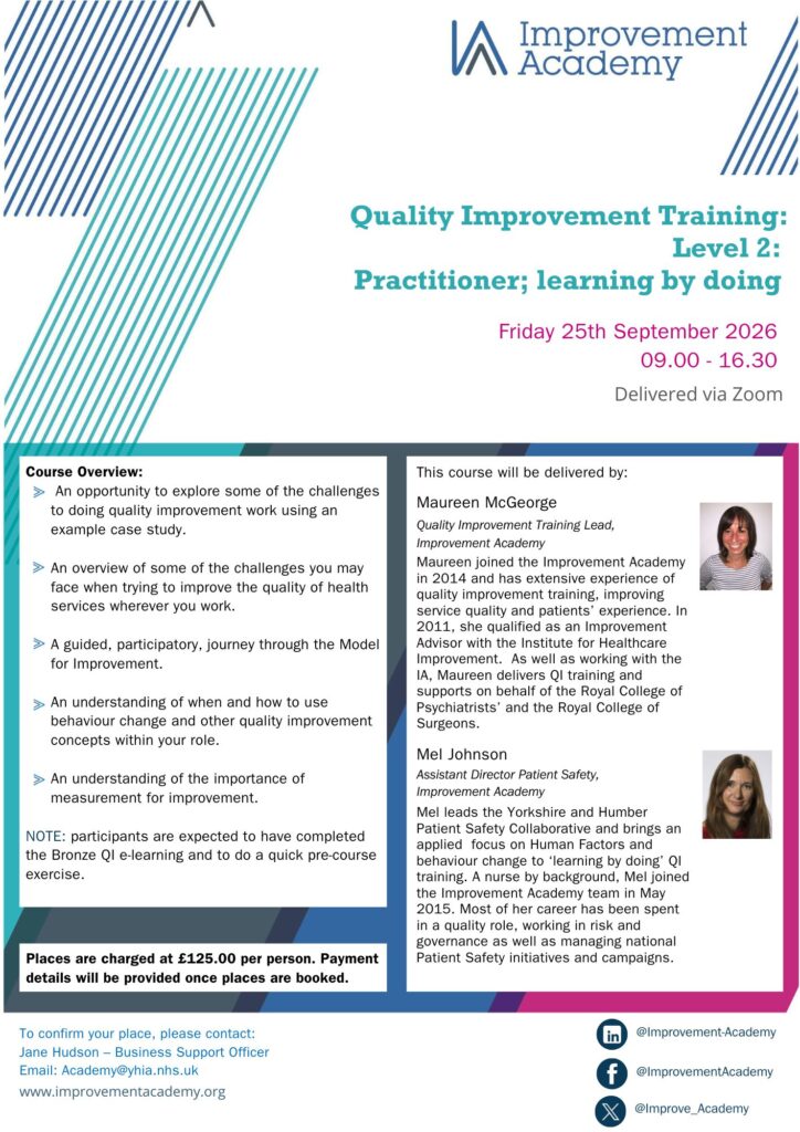 NOTE: participants are expected to have completed the Improvements Academy Bronze QI e-learning and to do a quick pre-course exercise